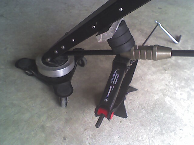 Hockey pucks make a nice brace to aid in jacking the legs for rolling into the garage